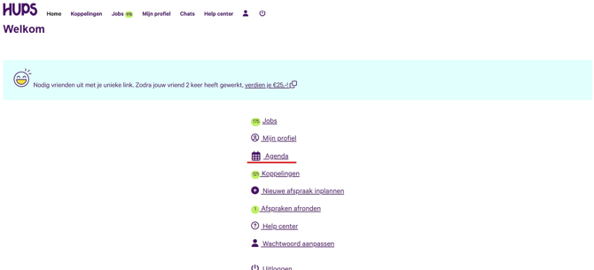 Ga via het startscherm in Mijn Hups naar jouw 'Agenda'.
