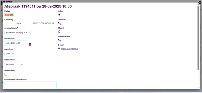 Klik op de afspraak die je wilt wijzigen, er opent zich een nieuw scherm.