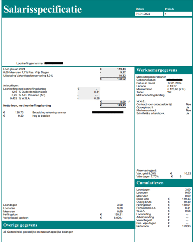 In linkerkolom van de loonspecificatie staat: